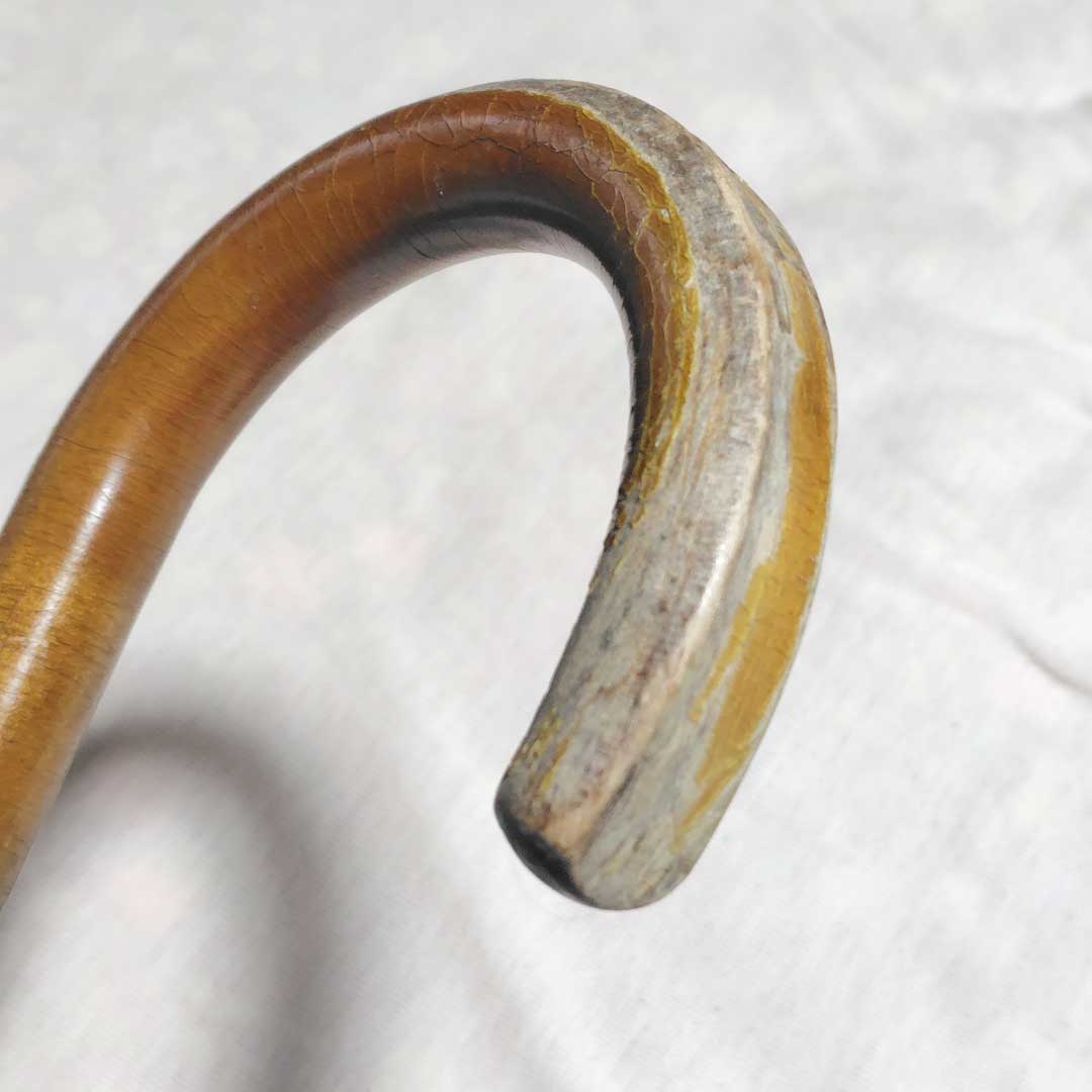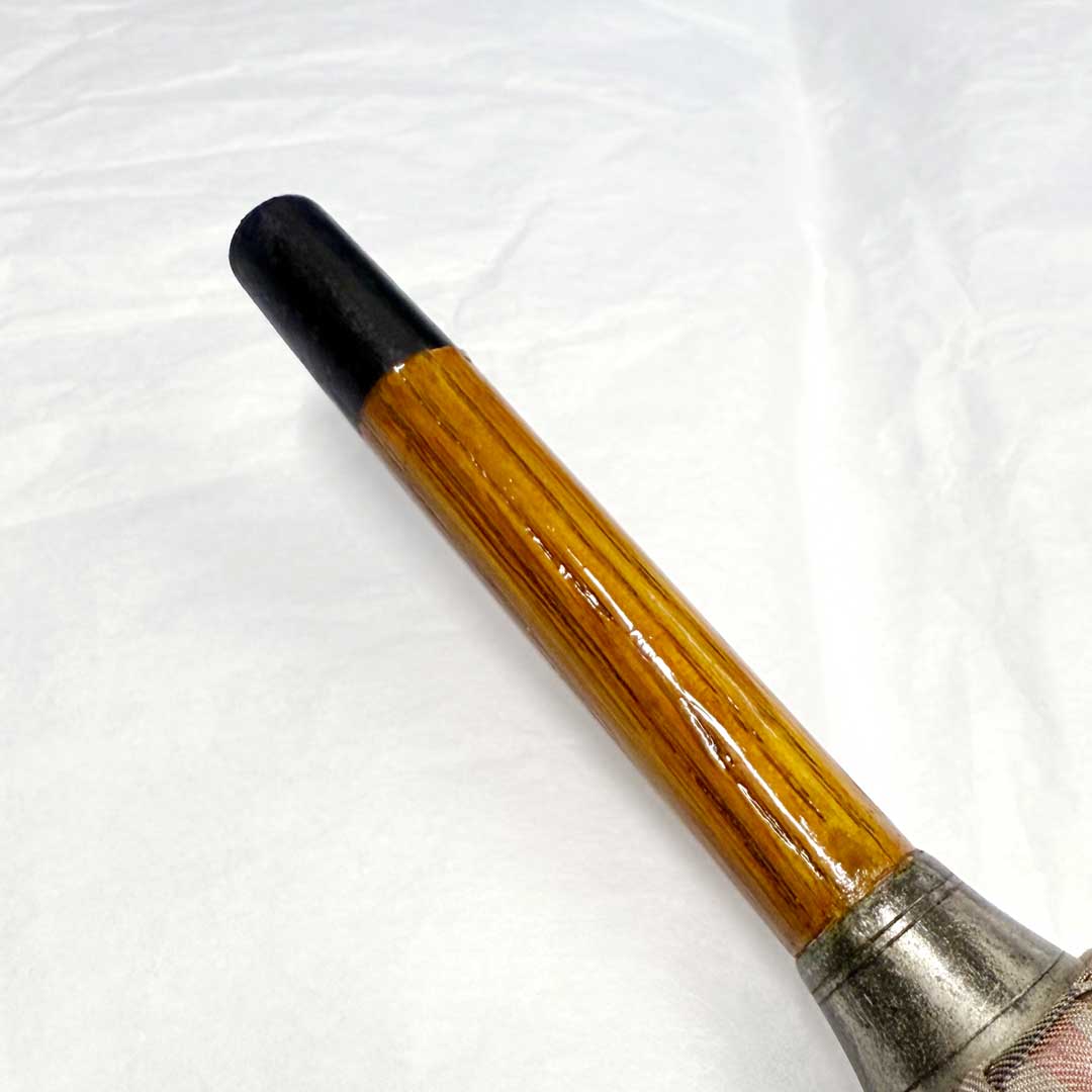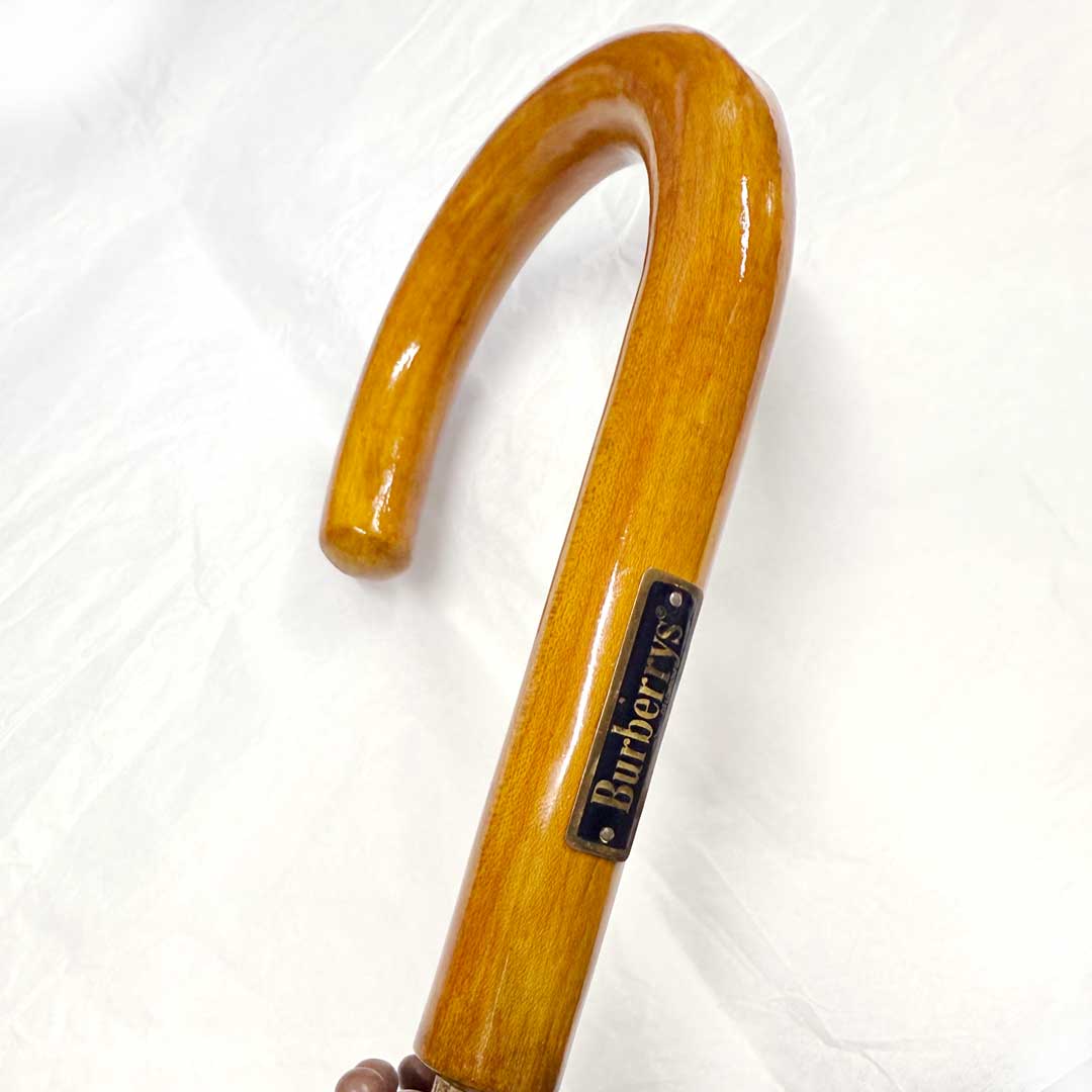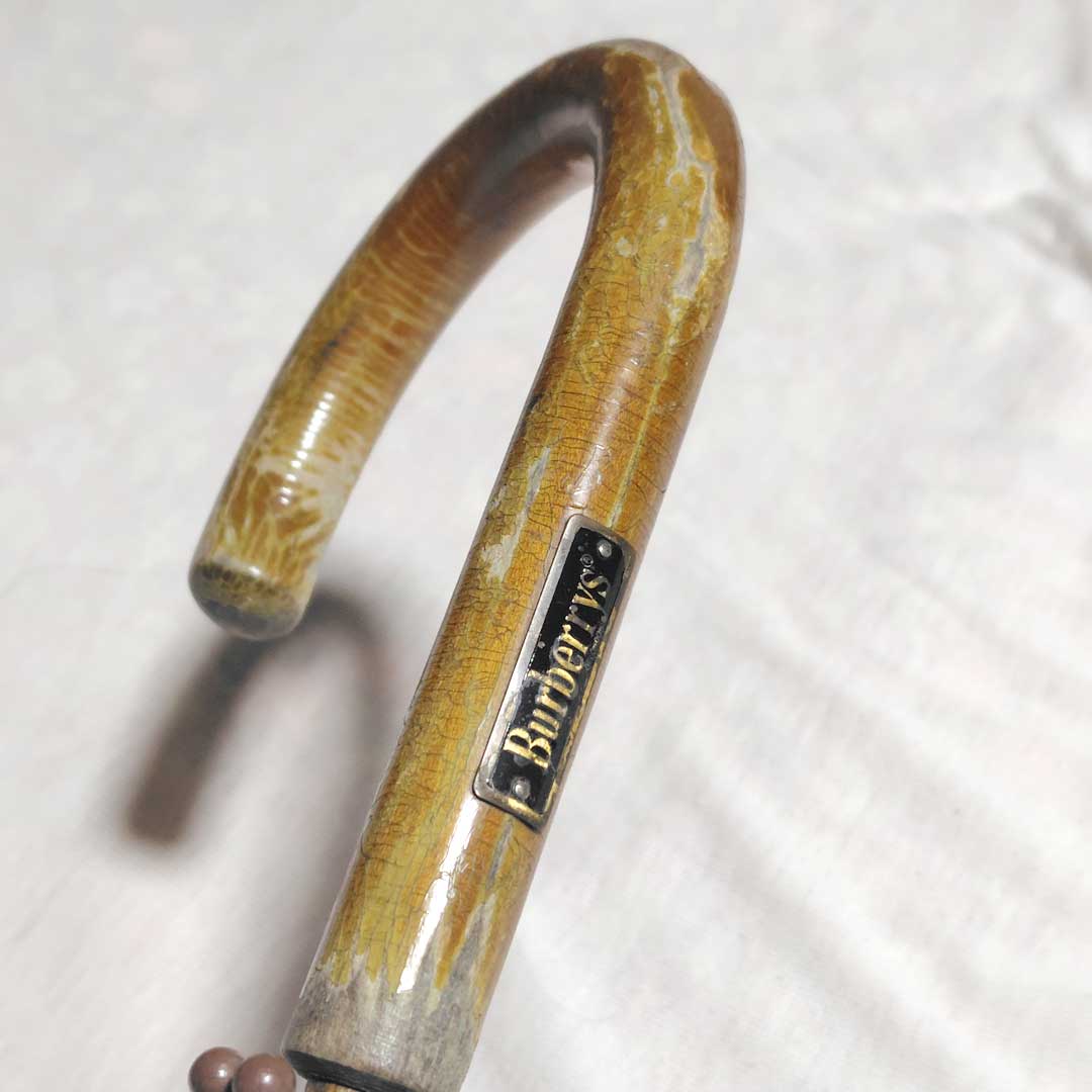 お客様から「手元と石突が木製なのですが表面が剥がれてしまっています。手元にはBurberrysのロゴが入ったプレートが付いているので交換ではなく塗り直しをお願いしたいです」とご依頼がありました。
